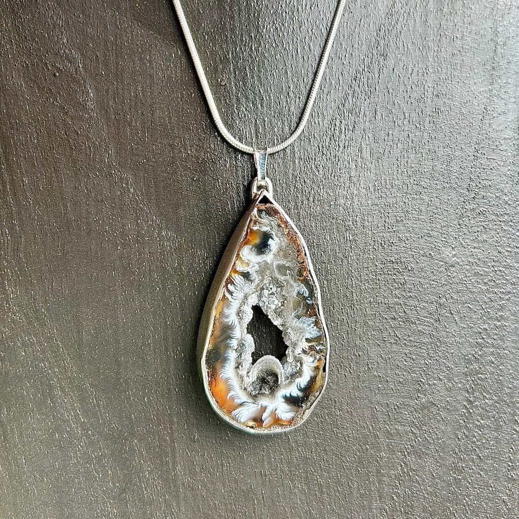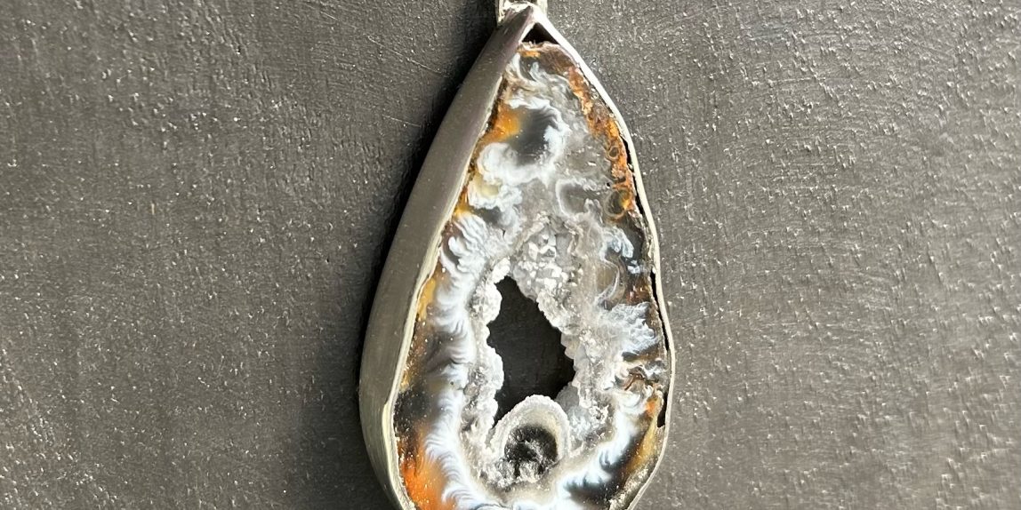 Zilveren hanger met een agaat doorsnede